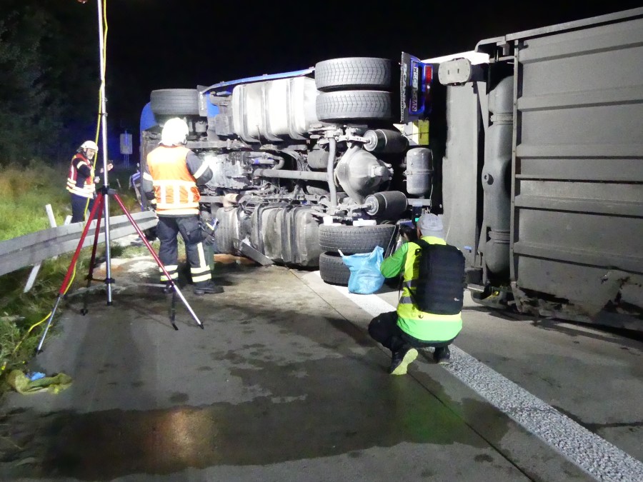 In der Nacht kam es zu einem LKW Unfall zwischen Hainichen und Frankenberg, bei dem ein LKW umstürzte. Die Feuerwehr sicherte die Unfallstelle ab, nahm die Beseitigung ausgelaufener Betriebsstoffe vor und unterstützte gemeinsam mit den Feuerwehren der Stadt Hainichen den Bergedienst um die Fahrzeugbergung vorzubereiten.
