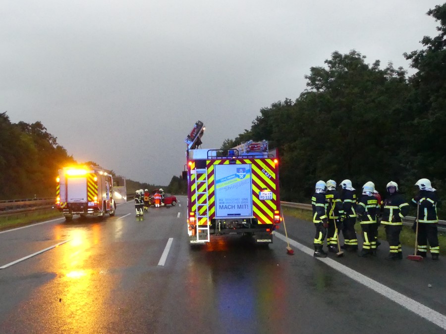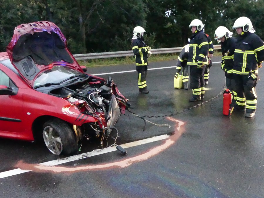 Infolge von Regen kam ein PKW von der Fahrbahn ab und prallte in die Mittelleitplanke. Der Insasse konnte sich selbstständig und verletzt aus dem Fahrzeug befreien. Die Feuerwehren aus Pappendorf und Böhrigen sicherten die Einsatzstelle, banden ausgelaufene Betriebsmittel ab und stellten die Löschbereitschaft sicher.