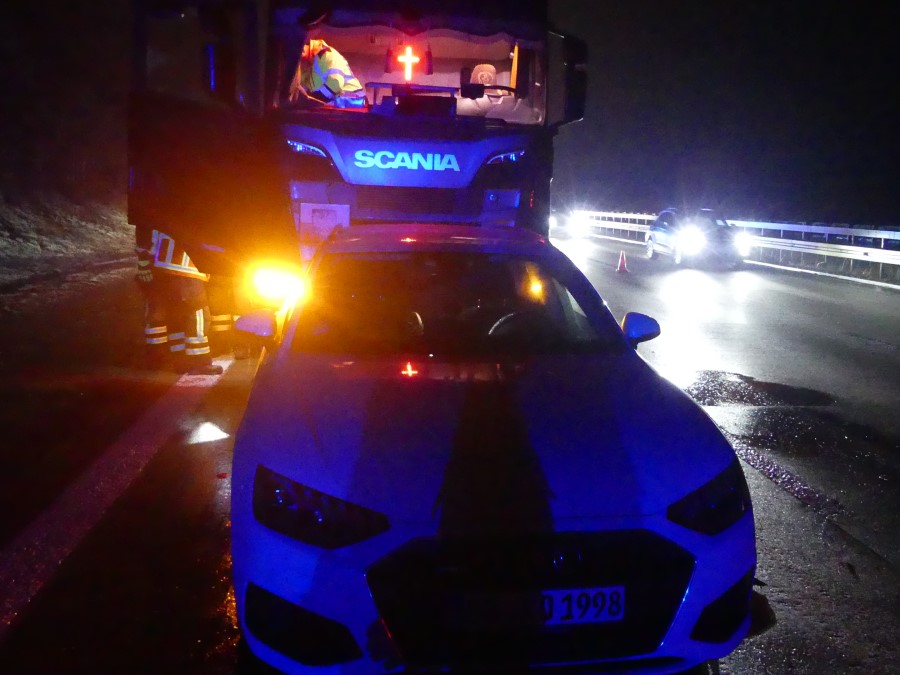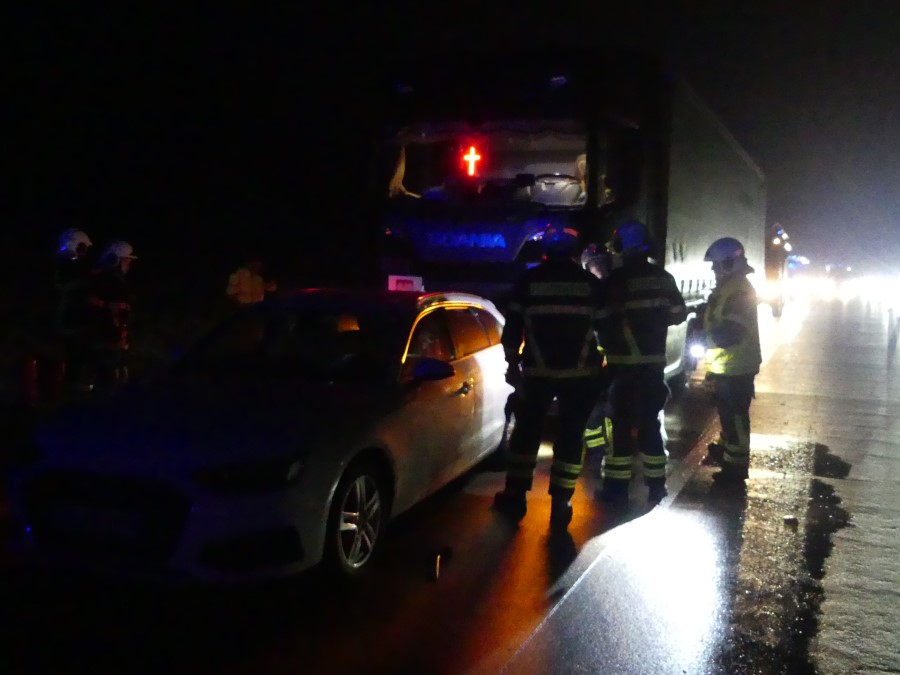 Durch einen automatischen eCall wurden wir zu einem Verkehrsunfall zwischen einem LKW und einem PKW alarmiert. Glücklicherweise gab es keine verletzten Personen.